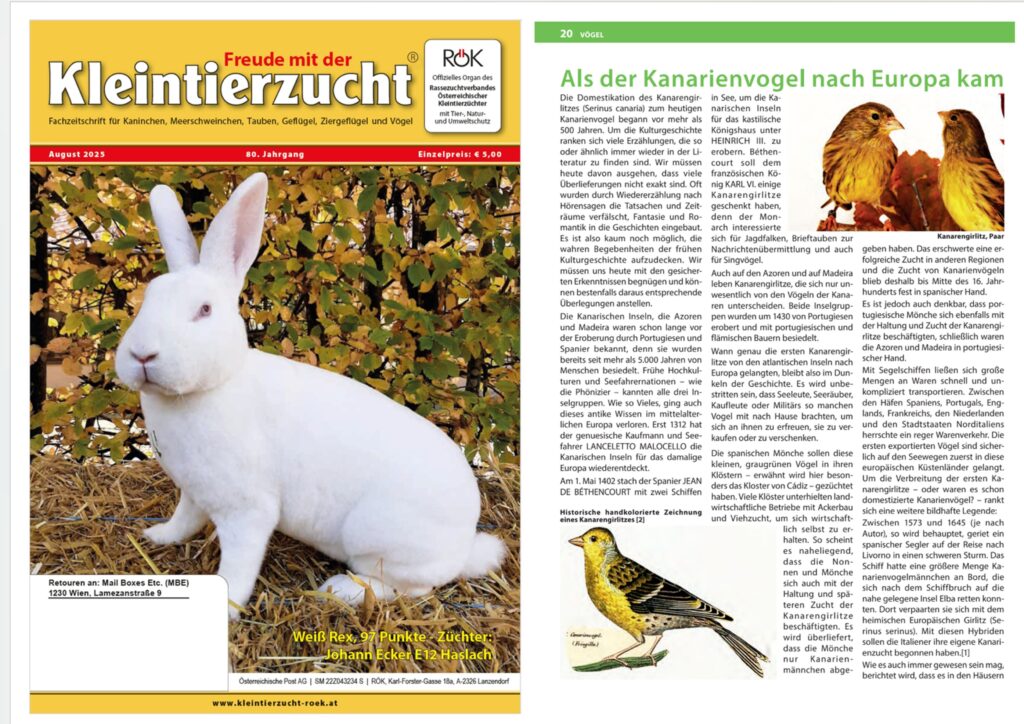 Veröffentlicht in „Freude mit der Kleintierzucht“ 8/2025 – Fachzeitschrift für Kaninchen, Meerschweinchen, Tauben, Geflügel, Ziergeflügel und Vögel