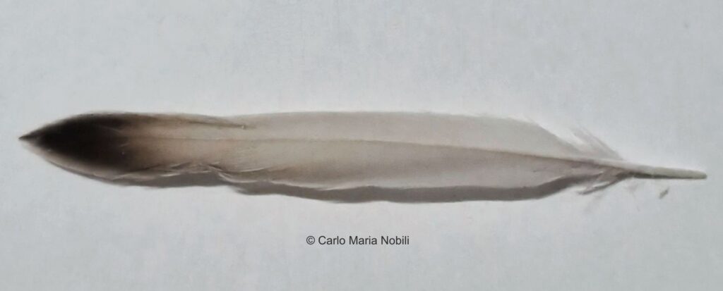 Feder des Großgefieders mit melaninhaltiger Spitze