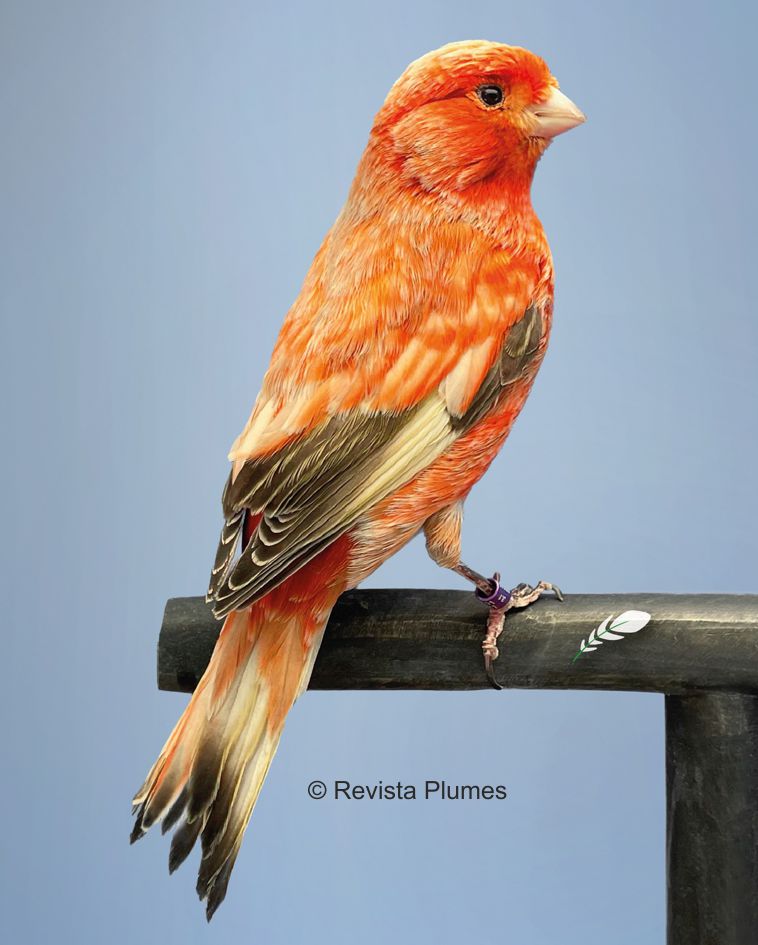 Die Hornteile können als dunkel bezeichnet werden, wenn sie auch nicht so schwarz sind wie bei den klassischen schwarzen Kanarien.