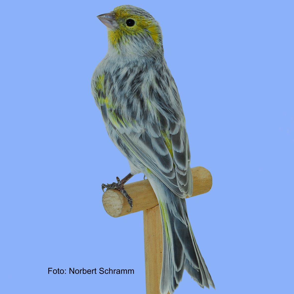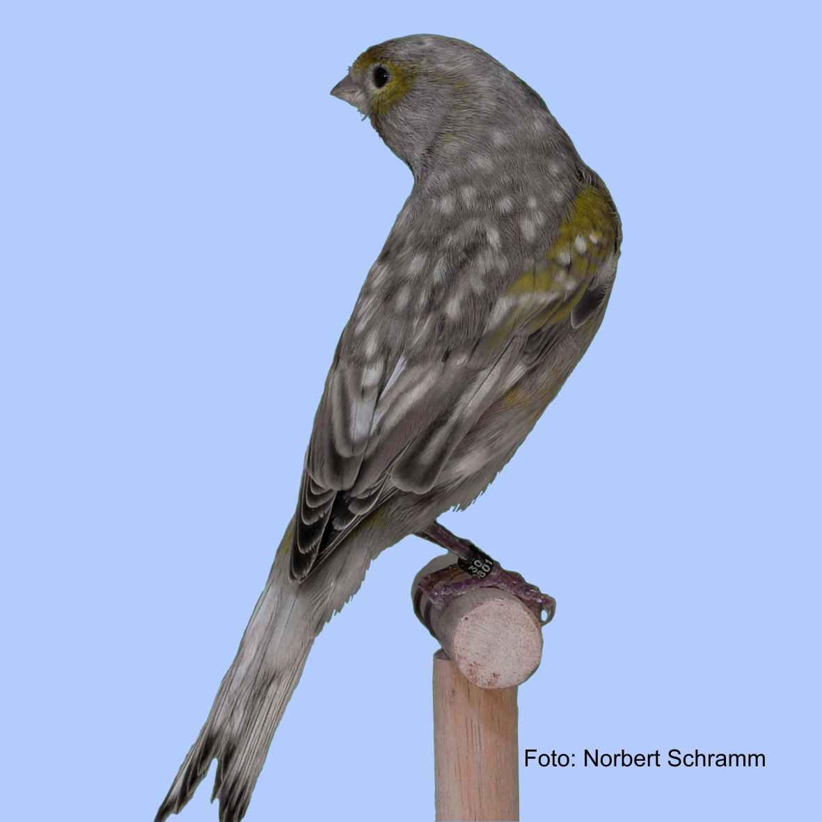 Der italienische Züchter Carlo Maria Nobili stellte im September 2015 Kanarienvögel vor, die einheitlich hellgrau waren. Das Zeichnungsmelanin ist fast vollständig verschwunden. Nur die Spitzen der Flügel und der Steuerfedern bleiben schwarz. Die Hornteile sind deutlich dunkelgrau, das Auge ist schwarz, während das Untergefieder hellgrau ist. Der Züchter nannte sie „Nero Perla“ (Schwarze Perle).